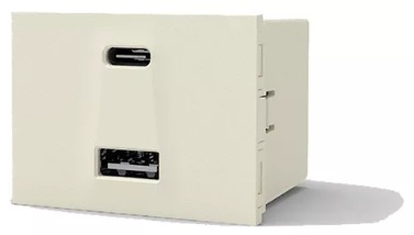 Permite cargar la batería de dispositivos móviles con conexión a puerto USB que cumplen con la normas USB 2.0 BC1.2 (Battery Charging Specification, Revision 1.2); Apple® 2.4A/2.0A/1.0A, Samsung® 2.0A. Conecte su dispositivo móvil al conector USB frontal y el mismo comenzará a cargarse automáticamente, la velocidad de carga e indicación de la finalización de dicho proceso es controlada e indicada por el dispositivo móvil. Un LED ilumina de forma tenue y de color azul el interior del conector, para facilitar su ubicación en ambientes poco iluminados y a la vez indicar que el módulo se encuentra energizado. • Apple® es marca registrada de Apple Inc. • Samsung® es marca registrada de Samsung Group.